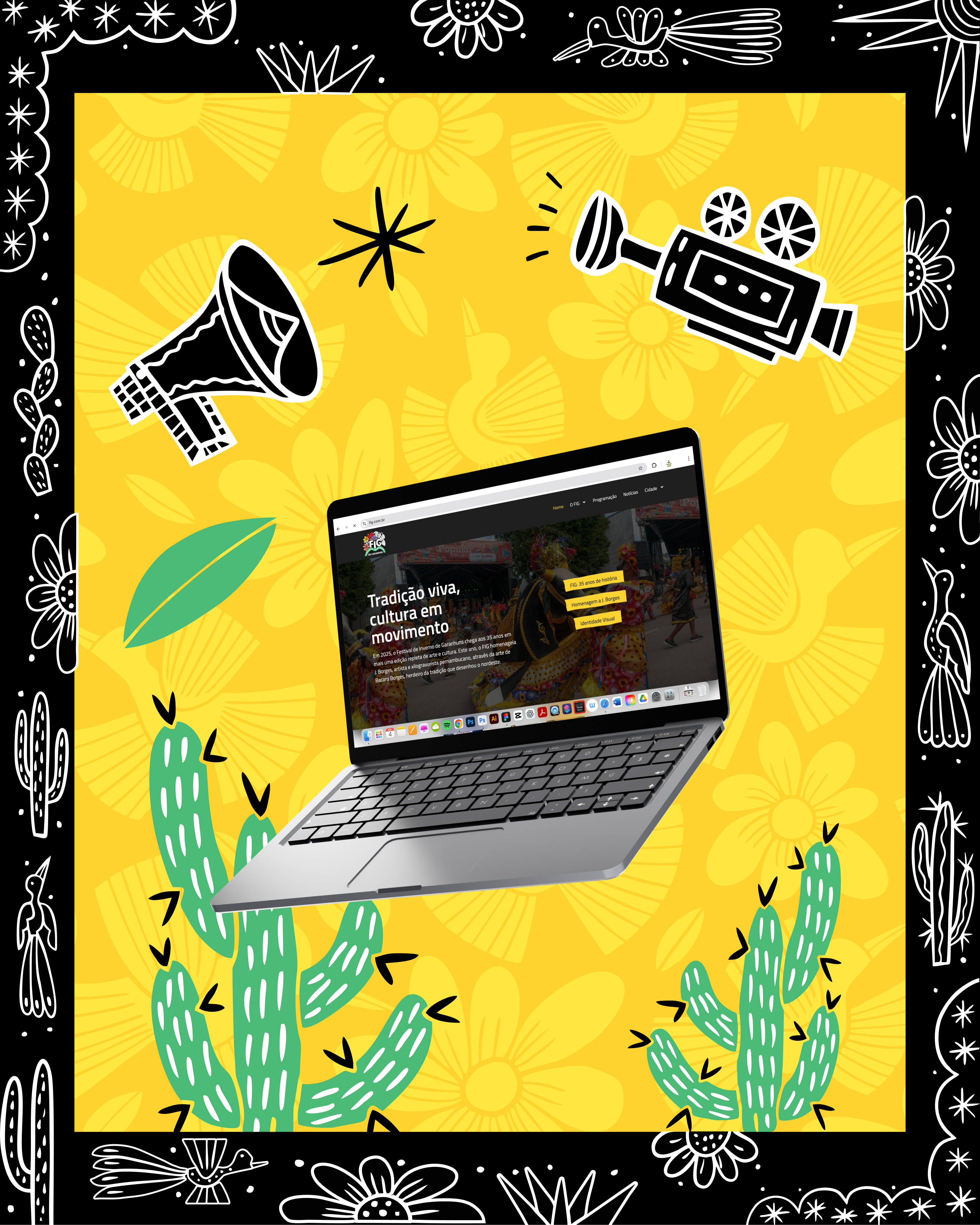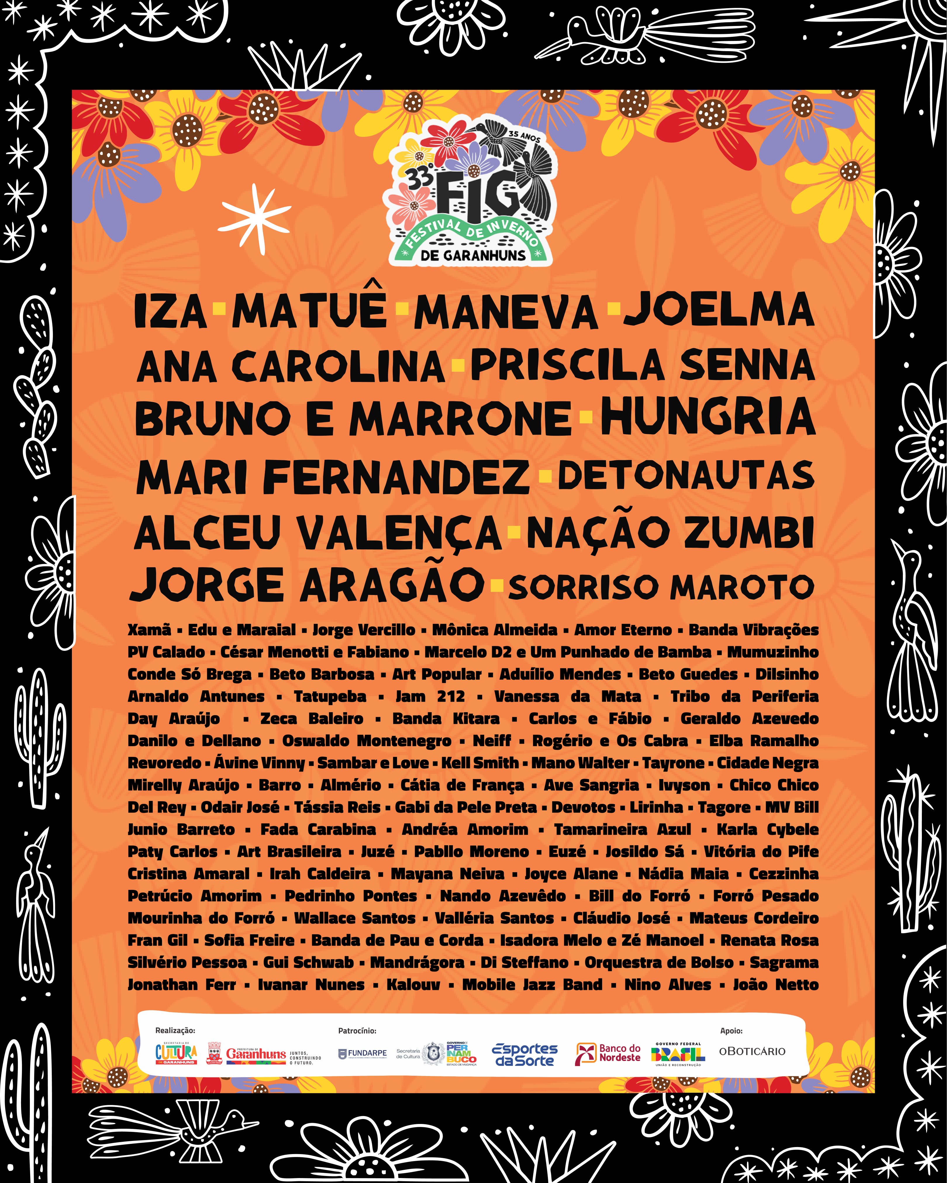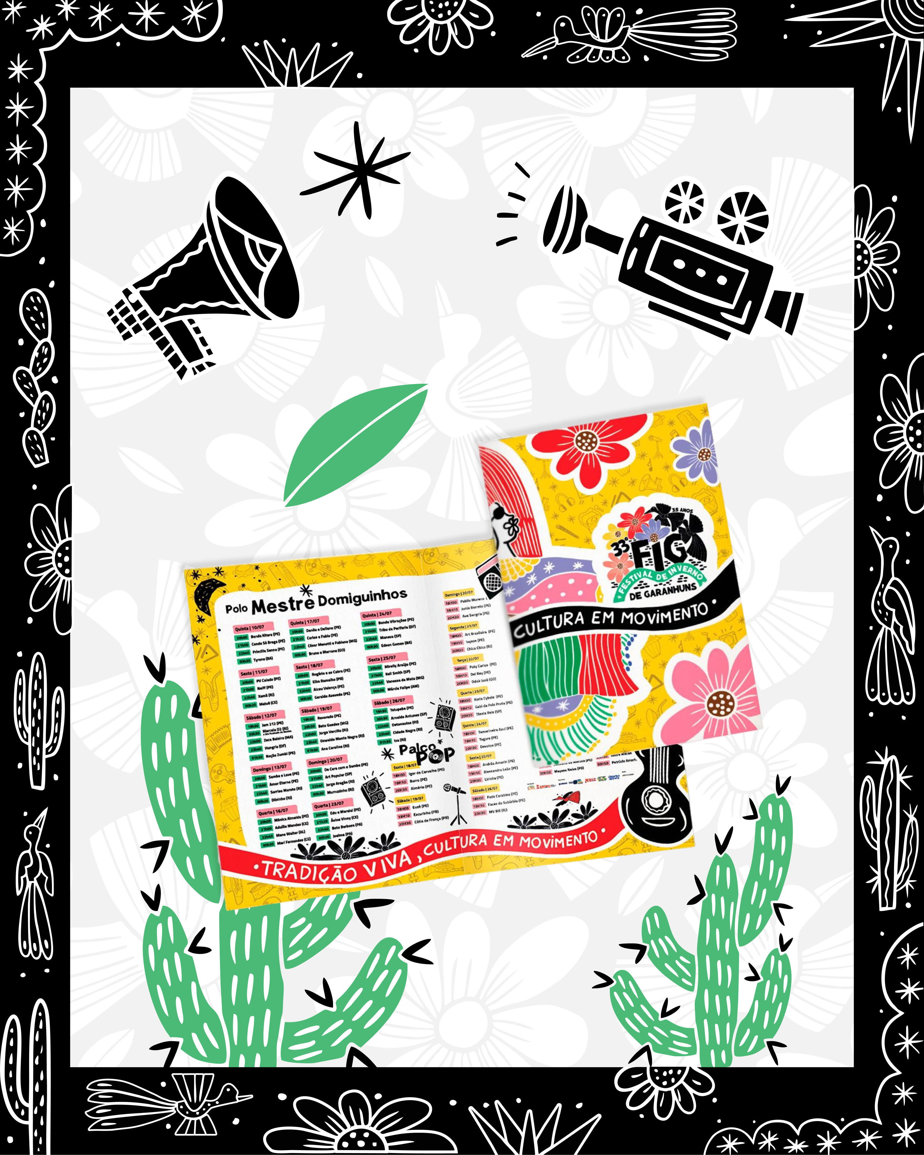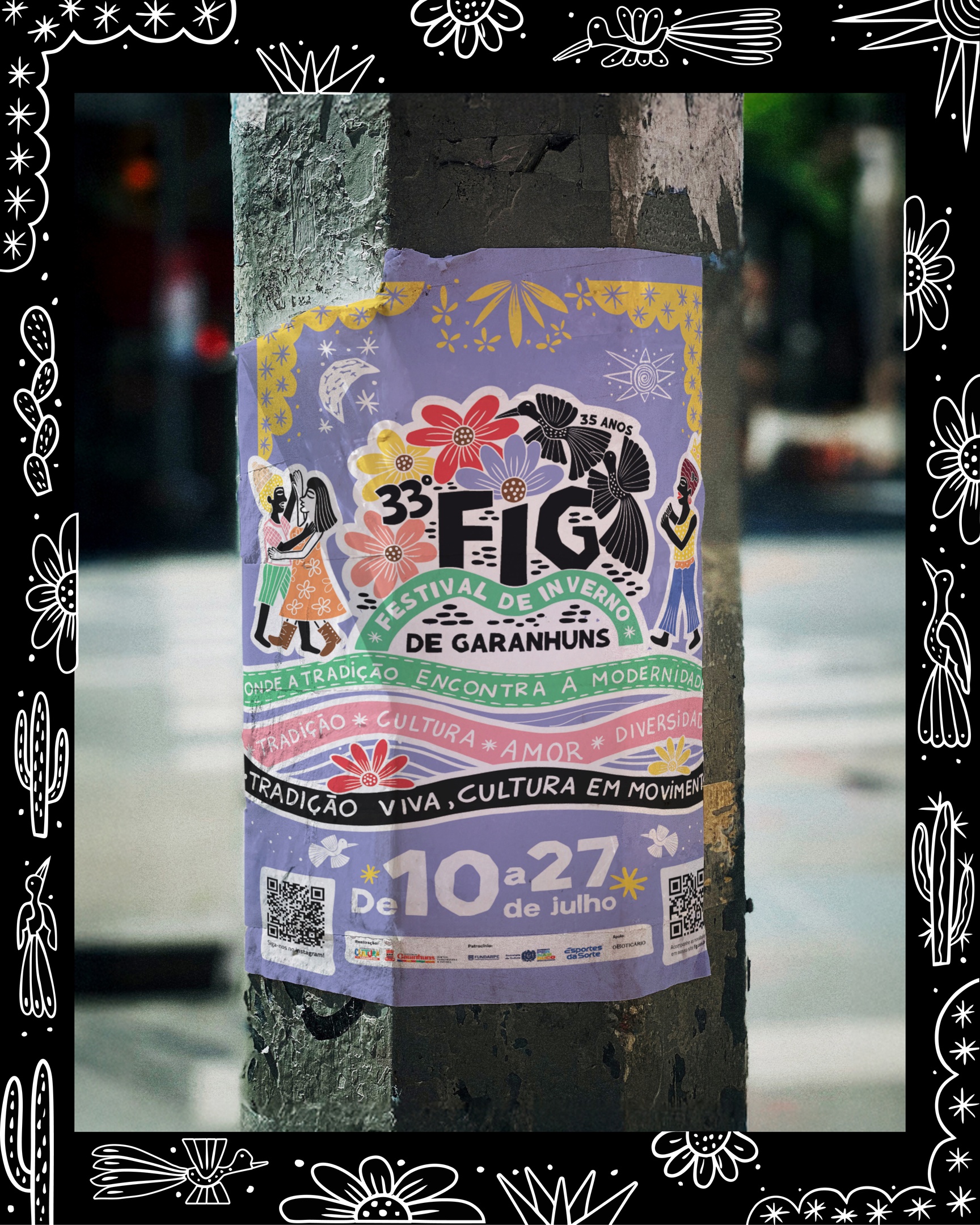 Neste projeto, tivemos a honra de contribuir com a comunicação visual domaior festival multicultural da América Latina : o Festival de Inverno de Garanhuns. Em sua 33ª edição, o FIG celebrou 35 anos de história, com 17 dias de programação e mais de 20 polos culturais espalhados pela cidade.